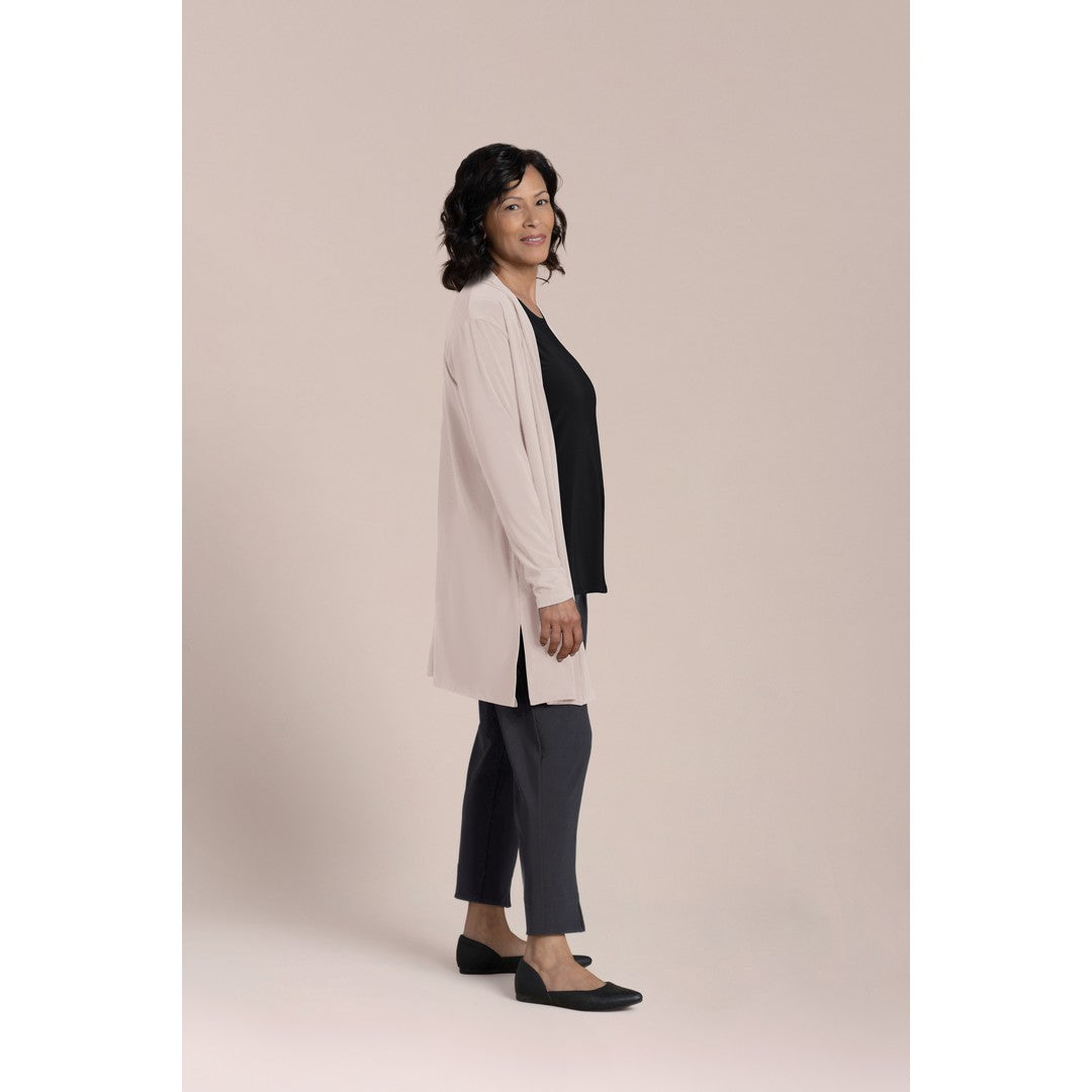 Meet your new throw-on-and-go essential. The Carefree Cover lives up to its name with an easy open-front design and clean, flowy lines that make layering a breeze. It’s the kind of piece that pulls everything together—whether you’re dressing up a simple tank or adding polish to your everyday look.