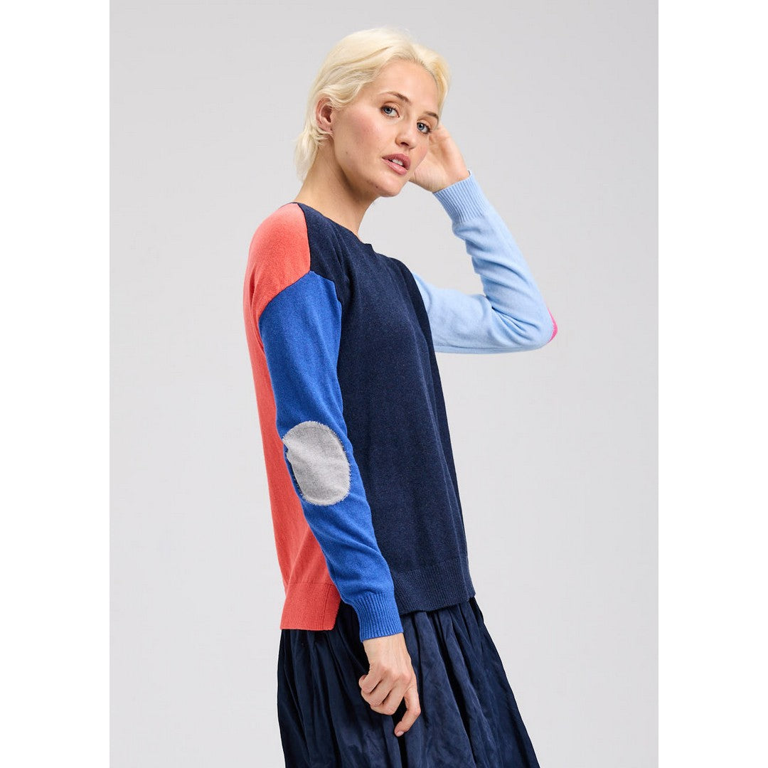 The Signature Patch Sweater is a Zaket & Plover fan favourite, and it’s easy to see why. Navy front, coral back, contrast sleeves in blue tones, and quirky elbow patches in pink and grey—it’s playful, comfy, and effortlessly cool all at once.